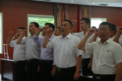 新黨員入黨宣誓、全體黨員重溫入黨誓詞,杜超同志領(lǐng)誓。